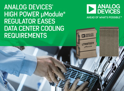Analog Devices, Inc. (ADI) élargit sa gamme de Power by Linear™ régulateurs µModule® avec le LTM4700, un régulateur de puissance, DC/DC, abaisseur, qui combine la puissance la plus élevée de sa catégorie avec les performances de rendement nécessaire à la réduction des besoins en refroidissement des infrastructures des centres de données. Avec une configuration simple 100A ou double 50A, la technologie innovante du boîtier du nouveau µModule de puissance permet d’augmenter la densité du serveur et d’accroître la disponibilité du centre de données et la puissance de calcul avec un impact minimum sur la taille du système et les coûts de refroidissement. La conception « composant sur boîtier » du µModule LTM4700, hautement intégrée, comprend une mémoire embarquée, des circuits de conversion de données et une interface numérique, ce qui réduit sa taille à près de moitié comparée à celle des composants concurrents. Les applications incluent l’informatique dématérialisée (Cloud), les calculateurs haute vitesse et les systèmes de réseaux optiques, les infrastructures de communications et les cartes PCIe, ainsi que les équipements médicaux, industriels, de test et de mesure.