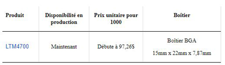 Le LTM4700 fonctionne sur une plage de tension d’entrée de 4,5V à 16V, avec des tensions de sortie contrôlées numériquement de 0,5V à 1,8V. Les convertisseurs analogiques/numériques (CAN), les convertisseurs numériques/analogiques (CNA) et EEPROM intégrés permettent aux utilisateurs de superviser, enregistrer et contrôler numériquement les paramètres d’alimentation via une interface I²C PMBus. La fréquence de découpage est synchronisée sur une horloge externe, de 200kHz à 1MHz, pour les applications sensibles au bruit. Le LTM4700 possède aussi des caractéristiques d’autoprotection et de protection de charge en cas de dysfonctionnements comme une surtension, une sous-tension, une surintensité et une surchauffe.