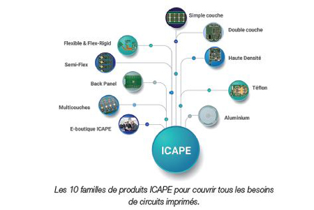 Les filiales ICAPE offrent un panel de solutions pour les besoins électroniques au niveau mondial : du circuit imprimé simple face aux multicouches, au cuivre épais, à l’aluminium, aux flexibles (Flex, Semi-Flex et Flexrigid), jusqu’au circuit à haute densité et à haute fréquence.