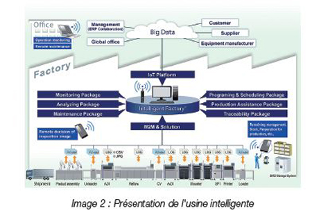 L’image 1 montre un exemple de ligne CMS Yamaha complète avec la « SOLUTION EN UNE ÉTAPE ». Voici certaines des fonctions liées à la connectivité entre machines :
