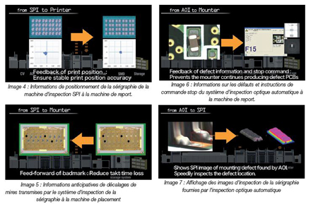 4. La transmission des informations anticipatives de décalages de mires par la machine d’inspection de la sérigraphie au système de placement raccourcit les temps de cycles (Image 5) ;