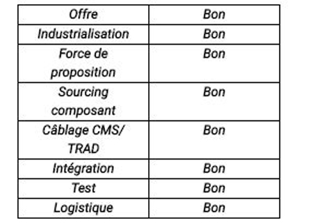 Devis rapide, 3 délais courts (4 / 6 / 8 semaines), fabrication au Portugal, d’une centaine de cartes électroniques câblées à quelques milliers.