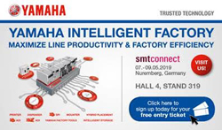 La section CMS de Yamaha Motor Europe présentera les dernières innovations de sa Total Line Solution dédiée à l’assemblage en surface haute productivité, au salon SMTconnect 2019 de Nuremberg, du 7 au 9 mai, avec notamment la nouvelle machine de sérigraphie YSP10 fortement automatisée.