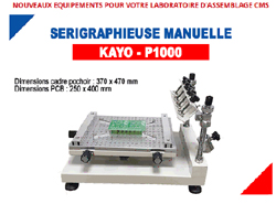 Sérigraphieuse manuelle pour l’application de la crème à braser sur les plages d’accueil des circuits imprimés.