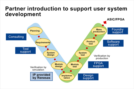Afin de soutenir les efforts de développement des semi-conducteurs de ses clients, Renesas a également mis en place un réseau de sociétés partenaires prêtes à répondre aux besoins uniques des utilisateurs. Ce réseau comprend des bureaux d’études qui exécutent des contrats de conception de semi-conducteurs et de partenaires technologiques qui fourniront une gamme d’outils logiciels et intergiciels. Ce réseau accélérera les innovations technologiques et les efforts de développement de produits des utilisateurs en réduisant les barrières à l’entrée pour le développement de dispositifs à semi-conducteurs et de FPGA. Renesas peut également présenter aux utilisateurs expérimentés des environnements de développement de conception basés sur des modèles, qui utilisent pleinement une IP de pointe.