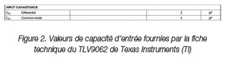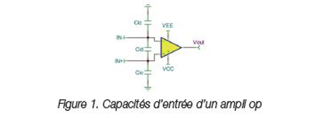 Pour de nombreux ampli op, ces capacités sont spécifiées dans la fiche technique. Elles sont généralement inférieures à 10 pF, comme le montre la Figure 2.