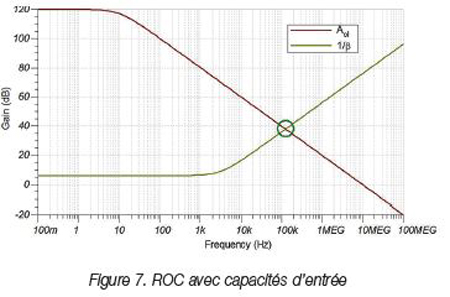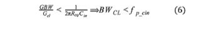 Le premier membre de l’équation 6 définit la bande passante en boucle fermée, BWCL. Tant que la fréquence de BWCL est inférieure à la fréquence du pôle, déterminée par le second membre de l’équation, la capacité d’entrée n’affectera que peu la stabilité du système.