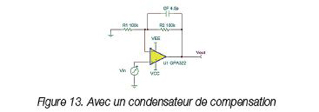 Un condensateur de compensation peut participer à stabiliser le scénario C du Tableau 1, comme le montre la Figure 13. L’équation 12 donne une valeur de 4,5 pF.
