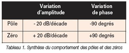 Le Tableau 1 synthétise le comportement des pôles et des zéros.