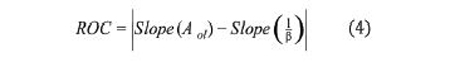 Pour effectuer une analyse ROC, tracer les courbes Aol et 1/β sur les mêmes axes et observez la pente de chaque courbe au point d’intersection. Utilisez ces valeurs pour l’équation 4. Le Tableau 2 établit la corrélation entre le ROC, la marge de phase et la stabilité globale du système.