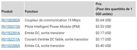 Les photocoupleurs RV1S92xxA et RV1S22xxA sont disponibles auprès des distributeurs mondiaux de Renesas Electronics. Les produits, fonctions et prix sont répertoriés dans le tableau ci-dessous.