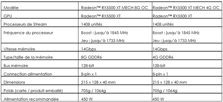 Les versions 8Go des nouvelles cartes graphiques de la série MSI Radeon™ RX 5500 XT GAMING / MECH seront disponibles en France courant décembre 2019 au tarif public conseillé de 234€ pour la série MECH et 269€ pour la série GAMING.