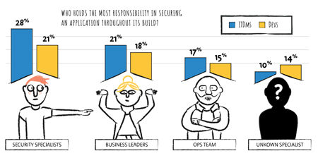 Il ne peut y avoir de sécurité sans disposer au préalable de fonctionnalités, donc la responsabilité est naturellement répartie entre différentes organisations. La bonne nouvelle est que les décideurs informatiques et les développeurs sont pour la plupart assez d’accord sur la répartition des responsabilités. Il n’y a donc pas de source de conflit ici.