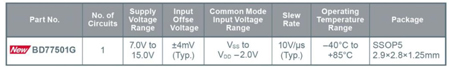 Le BD77501G utilise la technologie Nano Cap™ d’alimentation électrique pour parvenir à un contrôle extrêmement stable, ce qui en fait le premier amplificateur opérationnel de l’industrie qui élimine complètement l’oscillation induite par la capacitance de charge (c’est-à-dire le câblage) tout en prenant en charge l’amplification à grande vitesse (haute vitesse de balayage : 10 V/us) requise dans les systèmes de détection d’anomalies et autres systèmes.