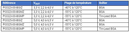Vicor vient de lancer deux nouveaux régulateurs buck (abaisseur) ZVS (Zero Voltage Switching, ou commutation au zéro de tension), les PI3323 et PI3325. Dotés d’une plage de température opérationnelle étendue allant de -55°C à +120°C, ces régulateurs sont des SiP (System-in-Package) en boîtier BGA 10 x 14 mm avec option Sn-Pb pour les applications Mil COTS. Ces régulateurs buck à haute densité et à rendement élevé ont une plage de tension d’entrée allant de 14 à 42 V et une sortie 3,3 V ou 5 V nominal, réglables respectivement entre 2,2 V et 4 V, ou entre 4 V et 6,5 V. Ces régulateurs peuvent fournir jusqu’à 22 A en continu, et leur rendement crête peut atteindre 96%. On peut aussi les monter facilement en parallèle pour obtenir une puissance plus importante.