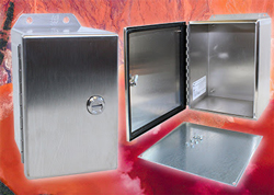 Avec un indice IP66, les boîtiers EJSS conviennent idéalement pour loger les instruments, les commandes électriques, hydrauliques ou pneumatiques, et comme boîtiers de distribution électrique ou boîtes à bornes. Pour les applications comme la transformation des aliments, la lèvre prévue sur le boîtier détourne les liquides et les contaminants de la garniture coulée dans l’ouverture, ce qui facilite le nettoyage. L’inox est également un excellent matériau pour les zones soumises aux risques de corrosion. La gamme EJSS est déclinées en 22 dimensions, de 102 x 102 x 76 mm à 406 x 356 x 254 mm. Toutes les tailles, sauf les deux plus petites, sont fournies avec un panneau en acier galvanisé non peint de 1,6 mm d’épaisseur. Les boîtiers EJSS répondent à la norme CEI 60529 IP66 pour les exigences européennes et CE, UL et NEMA 3R, 4, 4X, 12 et 13 pour les marchés nord-américains.