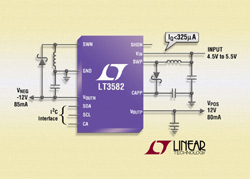 Les séries LT3582 sont constituées de deux convertisseurs monolithiques, un élévateur et un inverseur, le convertisseur élévateur possède un commutateur de puissance intégré et un commutateur de déconnexion de la sortie, alors que le convertisseur inverseur utilise une architecture à une seule inductance avec un commutateur de puissance intégré.