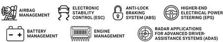 Ces composants sont basés sur l’architecture Power PC développée par Apple, IBM et Motorola au début des années 90. De nos jours, ST Microelectronics et NXP (Freescale) sont ceux qui produisent ces puissants microcontrôleurs, encore très courants pour les applications automobiles, en particulier pour les tâches de sécurité, telles que :