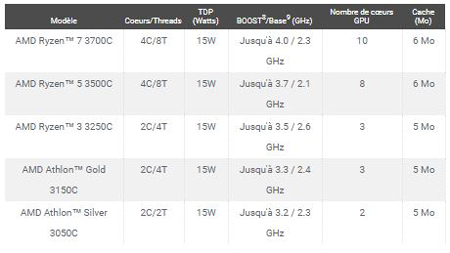 Les processeurs mobiles AMD Ryzen et Athlon 3000 C-Series arrivent prochainement dans les systèmes des principaux partenaires œuvrant sur les marchés éducatifs ou professionnels.