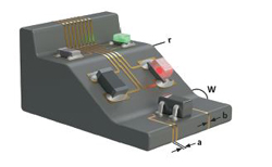 Support de composants - Les composants électroniques sont montés directement sur le support à l’aide d’un processus automatisé. Les processus souvent complexes nécessaires à la fabrication de circuits imprimés flexibles sont supprimés, ce qui permet d’économiser deux tiers des coûts.