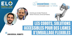 Adrien Poinssot et Jocelyn Peynet seront également présents le 10 décembre, de 15h à 15h35, pour un webinaire exclusif portant sur les bénéfices apportés par les robots collaboratifs dans les opérations d’emballage alimentaire. Plusieurs cas concrets seront présentés, et les experts d’Universal Robots répondront à toutes les questions relatives à la robotique collaborative.