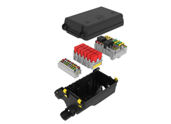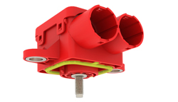 Pour le système hybride des Fiat Panda, Fiat 500 et Lancia Ypsilon Mild Hybrid, MTA a développé un nœud de dérivation 3 voies spécifique, doté d’un couvercle. Le nœud est vissé sous le plancher de la voiturSTLS e, à l’extérieur du véhicule et, grâce aux joints en silicone, son étanchéité est assurée, conformément à l’indice de protection IP69K. Relié par une broche filetée directement à la batterie auxiliaire qui se trouve à l’intérieur de l’habitacle il alimente le moteur électrique et le système de charge via 2 câbles de sortie.