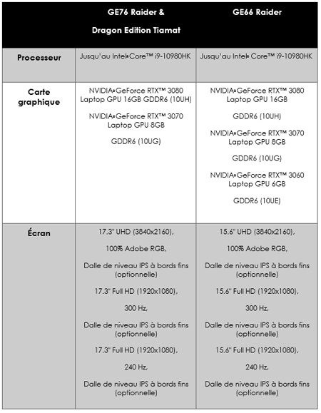 Depuis le berceau de la mystérieuse mythologie babylonienne, Tiamat, la mère dragon de tous les dieux, se dévoile dans toute sa splendeur lors de l’événement virtuel MSIology. À l’occasion du 35ème anniversaire de MSI, la société présente la quintessence de l’ordinateur portable gaming, l’exclusif GE76 Raider Dragon Edition Tiamat, et de toute une nouvelle gamme. En outre, MSI a été, une fois de plus, avant-gardiste en équipant ses derniers ordinateurs portables de matériel de pointe telle que la carte graphique NVIDIA® GeForce RTX™ 3080, offrant une amélioration significative des performances.