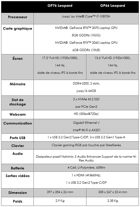 MSI présente les tout nouveaux GP66 et GP76 Leopard, conçus pour le travail quotidien et, plus particulièrement, les tâches exigeantes des ingénieurs. Ne vous laissez pas berner par leur nouveau châssis tout en finesse et sobriété, la gamme GP Leopard revient plus puissante que jamais. Les GP66 et GP76 Leopard sont équipés de cartes graphiques GeForce RTX™ 3080 et des derniers processeurs Intel® Core ™ i7 pour offrir une incroyable puissance de calcul et de rendu et leur connectique complète prend en charge toutes les normes de transmissions de données et sorties vidéo. Ils supportent une résolution pouvant aller jusqu’à 8k pour délivrer les détails visuels les plus fins possibles, l’idéal pour la réalisation de projets d’ingénierie et de conception complexes.