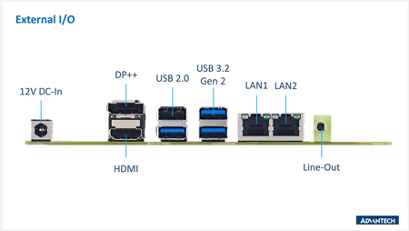 L’AIMB-218 Advantech offre des capacités graphiques de pointe, grâce à la technologie Intel® UHD Graphics, utilisant jusqu’à 32 EU (unité d’extension) L’AIMB-218 est richement dotée en interfaces d’affichage, avec notamment DisplayPort 1.2, HDMI 1.4, LVDS et eDP, permettant d’assurer un balayage progressif en définition 4K à 60 images/s sur 3 écrans. En outre, l’AIMB-218 dispose d’une capacité mémoire améliorée avec jusqu’à 32 Go de mémoire DDR4 3 200 MHz avec IBECC. L’AIMB-218 offre une latence réduite pour la vidéo haute résolution dans les applications avec affichage intégré, grâce à ses capacités graphiques de dernière génération, sa mémoire à haut débit, et son stockage à vitesse de transfert élevée.