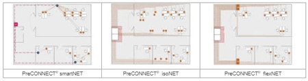 L’accent est mis sur le système de câblage PreCONNECT® smartNET, qui offre la possibilité d’étendre dynamiquement le débit et d’allouer individuellement les débits de données au sein d’un bâtiment en fonction des services ou des processus. Ce système est complété par la solution PreCONNECT® isoNET, qui repose sur un prémontage des câbles sur un ou deux côtés et sur du câblage conçu par des experts. PreCONNECT® flexNET, en tant qu’extension de PreCONNECT® isoNET, complète cette nouvelle gamme : le système offre une flexibilité supplémentaire en interposant un point de consolidation passif en cuivre dans la zone tertiaire.