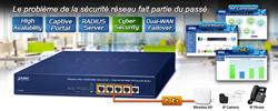 Pour répondre à cette demande, PLANET a lancé le VR-300P, routeur PoE sécurisé VPN, un appareil tout-en-un qui comporte plusieurs catégories principales dans vos déploiements de sécurité réseau : cybersécurité, protection de la sécurité par pare-feu SPI, audit des politiques (filtrage de contenu, VPN Tunnel et filtrage MAC / IP), contrôleur AP, portail captif, RADIUS et gestion facile (assistant de configuration, serveur DHCP et tableau de bord).