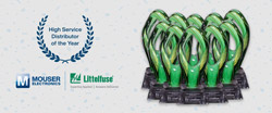 Littelfuse choisit le lauréat du prix Distributeur global service de qualité de l’année en se fondant sur plusieurs indicateurs de performances de distribution, comme la croissance globale des ventes, les ventes de produits cibles, la croissance du nombre de clients servis et le nombre et la qualité des campagnes marketing créatives destinées aux clients. Mouser a remporté le prix High Service/Catalogue Distributor of the Year de 2008 à 2011 puis en 2014, 2015, 2017, 2018 et 2019.