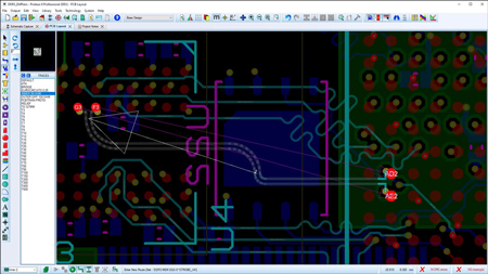 Cette version finalise la prise en compte du routage des paires différentielles, y compris avec des composants traversants. A présent, Proteus permet un développement rapide et précis des signaux différentiels à haute vitesse en tenant de la correction de skew et de l’adaptation des longueurs des pistes. Des rapports dédiés aux paires différentielles sont également générés.
