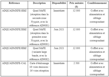 Ce nouvel étage de numérisation comprend quatre émetteurs-récepteurs à échantillonnage RF direct définis par logiciel AD9081 ou quatre AD9082. Il est conçu pour accélérer le développement des produits en fournissant au client des chaînes de signaux RF de référence, des architectures logicielles, des conceptions d’alimentations et un exemple de code d’application. ADI annonce par ailleurs une carte de numérisation utilisée en complément de cette plateforme pour faciliter l’exécution d’algorithmes d’étalonnage au niveau système et la démonstration du déterminisme en phase à la mise sous tension.