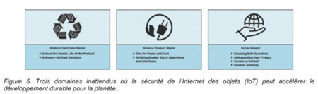La réduction des déchets opérationnels constitue un deuxième axe pour accélérer le développement durable grâce à l’amélioration de la sûreté. L’application de standards de sûreté à des applications IoT par nature « légères » réduit les dimensions des appareils connectés et leur consommation d’énergie globale. Il n’est pas rare qu’une approche de type « data centre » soit utilisée pour définir l’interface avec les appareils en périphérie de réseau en spécifiant l’incorporation d’algorithmes autres que les algorithmes indispensables, ainsi que d’interfaces supplémentaires dans les exigences de sécurité. Or, il tout à fait est possible de spécifier le strict minimum d’interfaces et de processus de chiffrement dans le but de réduire la taille du produit.