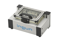 en plexi. L’opérateur y glisse les plaques portes pointes