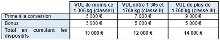 Afin d’accompagner les professionnels dans le verdissement de leurs véhicules, notamment dans les zones à faibles émissions mises en place par les collectivités locales (comportant des restrictions de circulation pour améliorer la qualité de l’air), le bonus et la prime à la conversion sont renforcés en 2021 pour les véhicules utilitaires légers électriques et hybrides rechargeables dans le cadre de France Relance. Prenant en compte les contraintes des artisans et des acteurs de la logistique urbaine dans leur choix de véhicules, le cumul des deux aides peut désormais atteindre grâce à France Relance 14 000 € pour les véhicules ayant une charge utile importante.