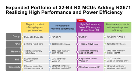 Renesas Electronics Corporation, l’un des principaux fournisseurs de solutions avancées à base de semi-conducteurs, a présenté aujourd’hui le groupe RX671 de microcontrôleurs (MCU) 32 bits, ajoutant une nouvelle solution monopuce haute performance et haute fonctionnalité avec détection tactile et capacités de reconnaissance vocale pour un fonctionnement sans contact à la célèbre famille RX. Faisant partie de la série RX600 grand public de Renesas, les microcontrôleurs RX671 sont construits autour d’un cœur de processeur RXv3 fonctionnant à 120 MHz et intègrent une mémoire flash supportant un accès en lecture rapide à une vitesse d’horloge de 60 MHz, pour d’excellentes performances en temps réel avec un score CoreMark de 707, et une efficacité énergétique parmi les meilleures de la catégorie à 48,8 CoreMark/mA.
