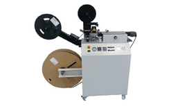 La machine de mise en bande alvéolée universelle (de 8 à 88mm de large). Équipement de table à installer au magasin (taux horaire faible) ou à connecter en ligne (RS232) de l’automate qui fabrique la pièce.