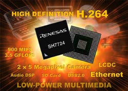 Renesas Technology Europe a annoncé le lancement du SH7724, le troisième produit de sa série*1 SH772x de processeurs d’application faible consommation conçus pour les applications multimédias telles que l’audio et la vidéo pour les appareils portables et industriels. Le SH7724 fournit 30% de plus en performance de traitement que le produit précédent, la lecture et l’enregistrement HD vidéo combinés à une variété d’interfaces de connectivité telles que USB2.0, SD*2 et Ethernet et deux interfaces caméra de 5 Méga pixels. Le nouveau SH7724 est destiné aux assistants personnels de navigation (PND : Personal navigation devices), aux lecteurs personnels multimédias (PMP : Personal multimedia players) et aux équipements audio et vidéo tels que les systèmes de portes d’entrée ou les caméras de sécurité IP. L’échantillonnage commencera en août 2009.
