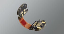 La tendance actuelle de nombreux dispositifs portables, tels que les appareils de surveillance des signes vitaux à des fins d’entraînement, de remise en forme ou cliniques, entraîne le développement de dispositifs présentant des facteurs de forme de circuit imprimé non standard, notamment ronds ou elliptiques. Dans d’autres cas, le circuit imprimé peut prendre des formes complètement irrégulières. L’intégration de circuits imprimés flexibles et semi-rigides (très compacts et à haute densité de composants) permet aux concepteurs de gérer facilement les formes de circuits imprimés les plus disparates. L’image 1 illustre un exemple de circuit imprimé à revêtement métallique.
