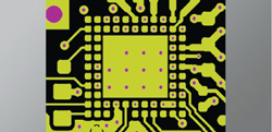 La technologie via-in-pad, principalement utilisée avec des composants hautement intégrés (tels que les matrices de billes ou BGA) ou avec un nombre élevé de broches et un pas très étroit, permet de créer des trous directement sur les pastilles, reliant ainsi les pastilles aux couches internes. L’image 3 montre un exemple d’application de la technologie via-in-pad, avec des via réalisés directement sur certaines pastilles de composants.