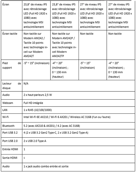 L’utilisation des PC tout-en-un Modern AM242 et AM272 de MSI est la meilleure façon de donner du style à un bureau, un salon ou même un bureau à domicile, car ils sont à la fois esthétiques et totalement fonctionnels, l’idéal pour apprendre ou travailler à la maison ou au bureau. Les PC tout-en-un Modern AM242 et AM272 sont conçus pour améliorer votre confort visuel et ils sont tous deux équipés d’une technologie antiscintillement qui réduit efficacement la fatigue oculaire causée par une utilisation prolongée de l’écran, ainsi que de la technologie de réduction de la lumière bleue qui filtre cette lumière qui peut s’avérer nocive pour vos yeux et offre une expérience visuelle des plus confortables.