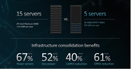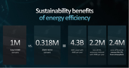 00:19:02 - 00:20:35 : Pourquoi EPYC™ est important pour la consommation d’énergie dans les centres de données. (« Vous pouvez économiser des millions de dollars en passant à la quatrième génération EPYC™ »)