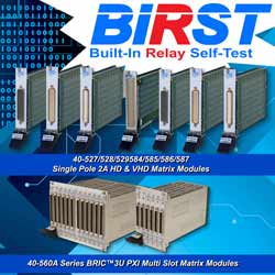 La vérification et le diagnostique d’opérations de commutation complexes dans un système de test a toujours été un problème et particulièrement dans la plate-forme PXI. Pour cette raison, Pickering Interfaces a annoncé qu’il présentait une solution intégrée d’autotest sur certains modèles PXI de commutation. Ce dispositif s’appelle BIRST™, ou communément Built In Relay Self Test.