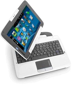 L’écran LED TFT couleur 8.9" WGA (résolution 1024x600) du TiBook pivote dans les deux sens à 360°. Il est parfaitement lisible même en extérieur. La dalle tactile est traitée anti-reflet.
