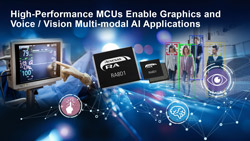 Tous les MCU de la série RA8 tirent parti des performances élevées du processeur Arm Cortex-M85 et de la technologie Helium™ d’Arm avec une extension du jeu d’instructions vectoriel/SIMD qui permet de multiplier par 4 les performances des implémentations de processeurs de signaux numériques (DSP) et d’apprentissage automatique (ML) par rapport au cœur Cortex-M7. Ces performances supplémentaires sont idéales pour le traitement des graphiques et des réseaux neuronaux et peuvent éliminer le besoin d’un accélérateur matériel séparé dans certaines applications. Ils offrent également une sécurité avancée, notamment la technologie Arm TrustZone®, Renesas Security IP (RSIP-E51A), Secure Boot avec bootloader de première étape dans un stockage immuable, interface SPI octale avec décryptage à la volée (DOTF), et extension de sécurité Pointer Authentication and Branch Target Identification (PACBTI).