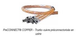 Tout comme les trunks et trunks multijumpers PreCONNECT® en fibre optique, les trunks et trunks multijumpers PreCONNECT® COPPER sont assemblés et prêts pour une installation « Plug-and-Play » rapide et sûre dans les data centers. La préconnectorisation des trunks réduit le temps d’installation et élimine le besoin de personnel qualifié avec des outils et appareils de mesure pour l’installation.