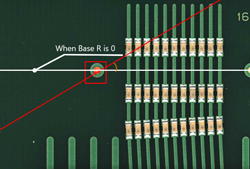 La nouvelle vérification de l’alignement de plusieurs composants simplifie la programmation de l’YRi-V pour mesurer la distance entre des modules comme les émetteurs LED pour l’automobile ou l’éclairage général. Pour fabriquer des phares de voiture, les utilisateurs peuvent tirer profit des données capturées par l’AOI pour optimiser le placement de chaque optique de phare afin que la performance d’éclairage soit maximale. La vérification de l’alignement peut servir à contrôler l’espacement entre de nombreux autres types de composants, comme les capteurs à effet Hall.