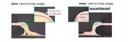 En effet la couverture des bords tranchants devient une préoccupation croissante avec les vernis de protection.